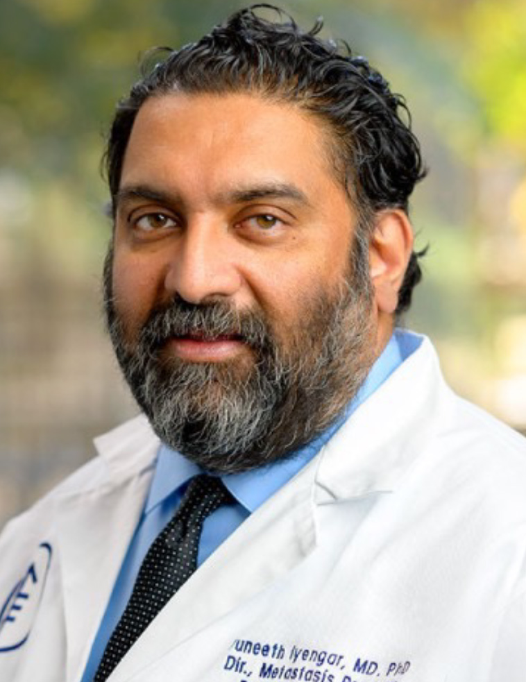 Dr. Puneeth Iyengar works as Director (Metastatic Program) at the Department of Radiation Oncology at Memorial Sloan Kettering Cancer Center. He received his MD, PhD degrees at Albert Einstein College of Medicine (NYC), following which he completed his residency in Radiation Oncology at MD Anderson Cancer Center. Dr. Iyengar’s clinical focus is on investigating the use of local therapy (SBRT) in the setting of oligometastatic NSCLC (Iyengar et al, JCO 2014, Iyengar et al, JAMA Oncology 2017), hypofractionated therapies for stage III NSCLC (Iyengar et al, JAMA Oncology 2021). He is principal investigator of NRG LU 002, a phase III randomized trial assessing the benefits of immunotherapy -/+ local therapy on overall survival for stage IV NSCLC. Dr. Iyengar also runs an independent NIH-funded research laboratory studying cancer cachexia from a basic science and translational perspective.